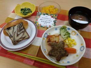 12月24日の昼食時、クリスマスメニューを提供いたしました。