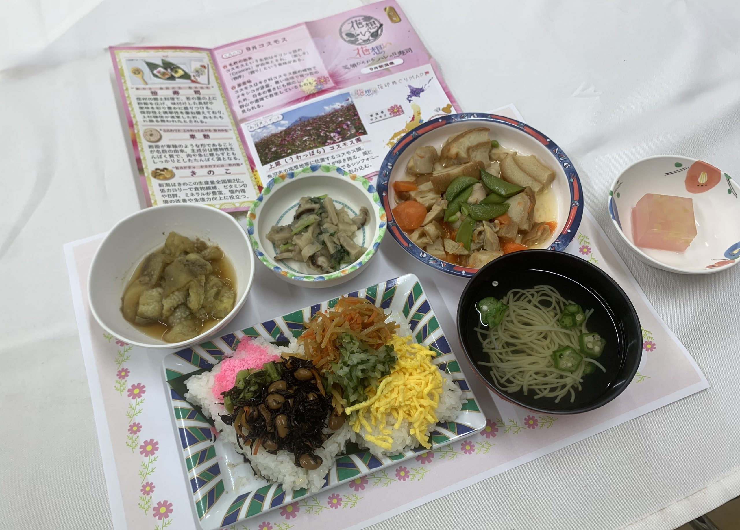 3日の昼食はイベント食「花想い~笑顔広がるハレの日寿司~」を提供しました。