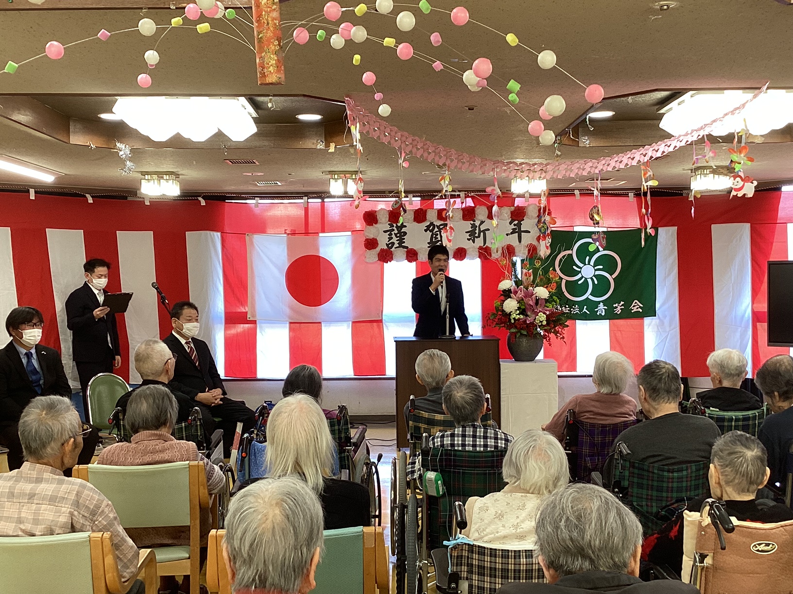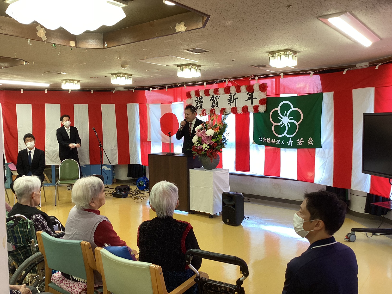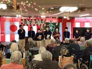 毎年、元旦祭式典では職員個人の抱負を述べる機会が御座います。職員によりプライベートや仕事など頑張りたい事を発表していますが、「来年もこの場所で、皆さんと元旦を迎えたい」というシンプルで大切な言葉が印象に残りました。今年は面会や行事など、ご家族の皆さんとご利用者が主役となる機会を増やしてまいります。