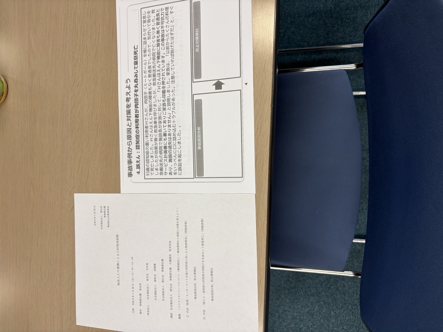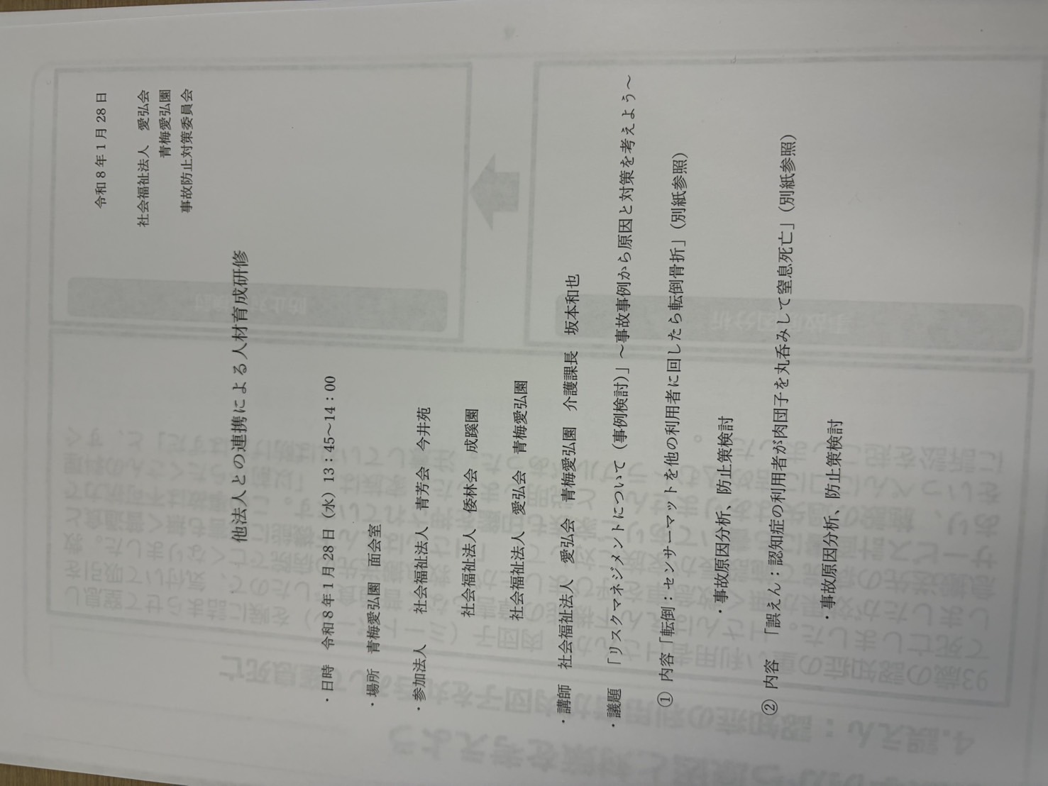 本日、1月28日は愛弘園さんで行われた「リスクマネジメントについて(事例検討)」~事故事例から原因と対策を考えよう~へ参加させていただきました。