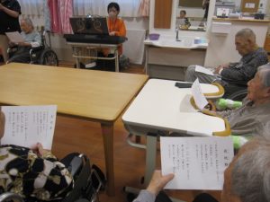 歌詞をご覧になり歌われる方、音楽や歌のフレーズを聞き曲を思い出され歌われる方、目を瞑って聞かれる方など楽しまれておりました。