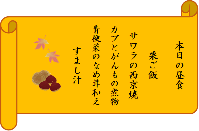 そんな本日、十三夜の昼食は「栗ご飯」です。