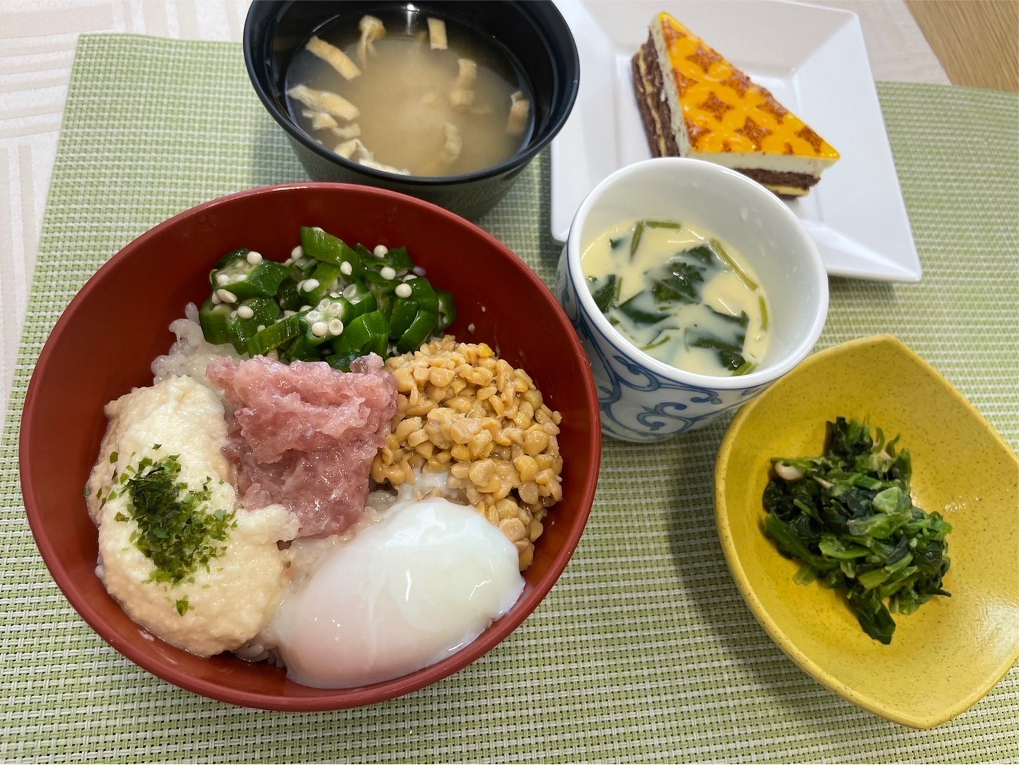 ・ねぎとろ丼 ・茶碗蒸し ・ほうれん草のピーナッツ和え ・味噌汁