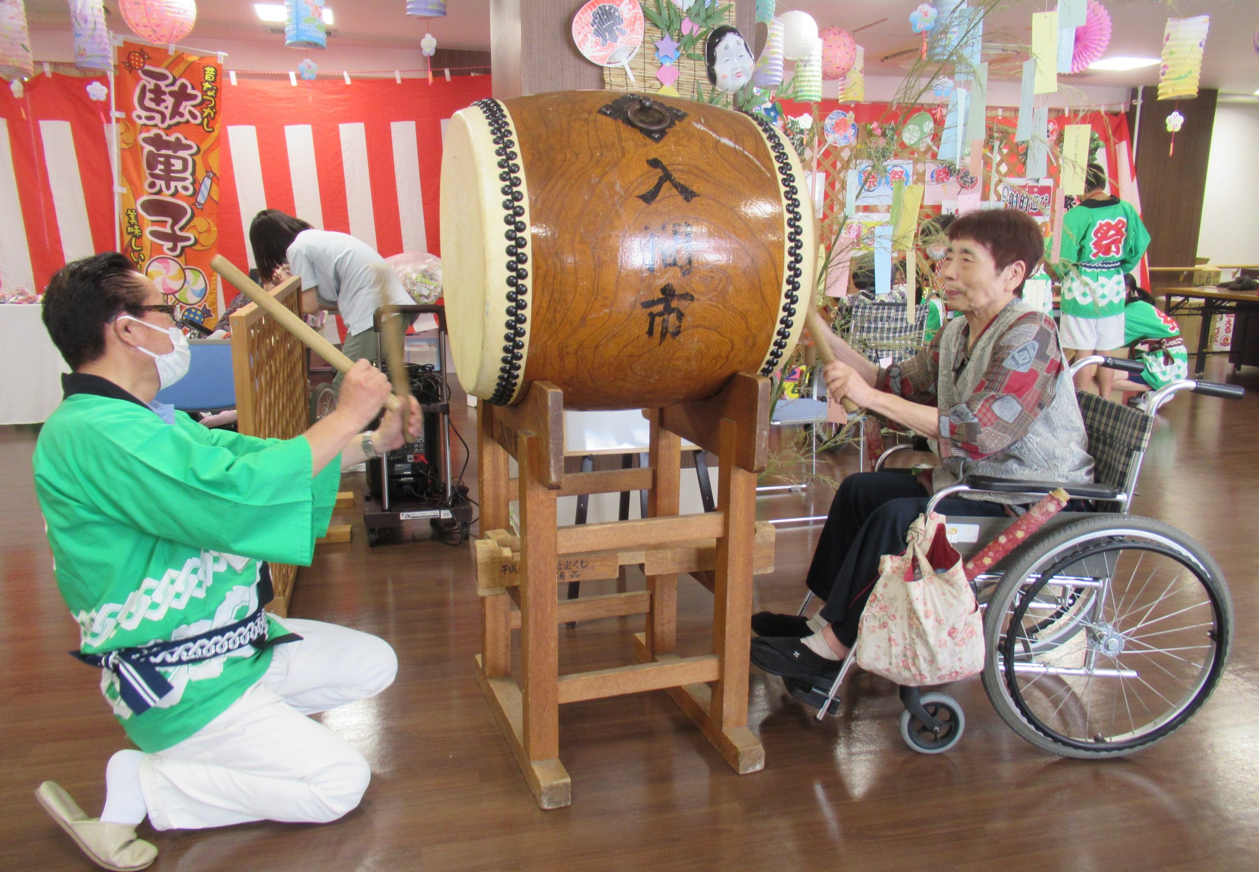 ヨーヨー釣りを楽しまれ時に太鼓の音色を聞かれ、終始笑顔溢れる七夕祭となりました!