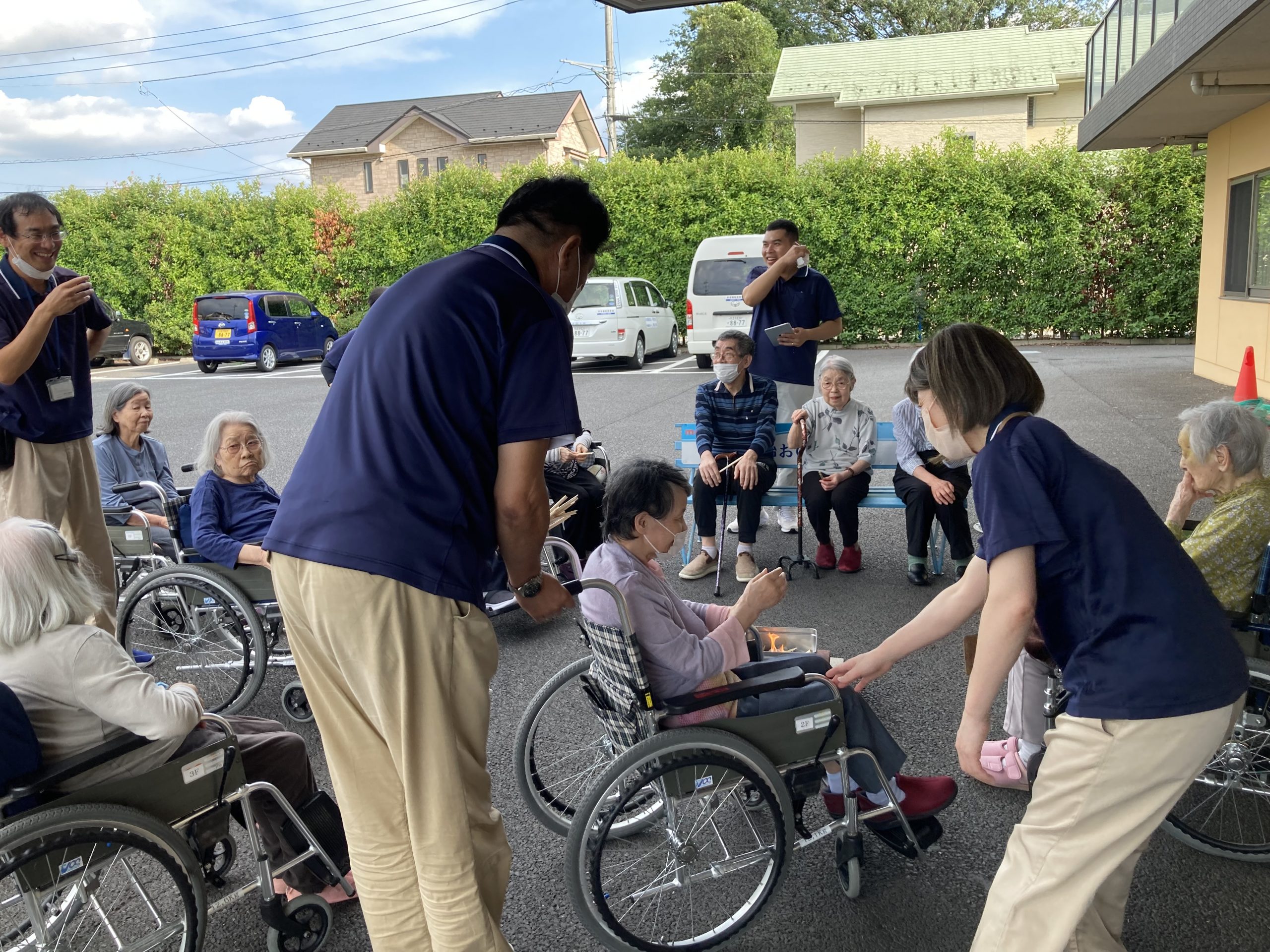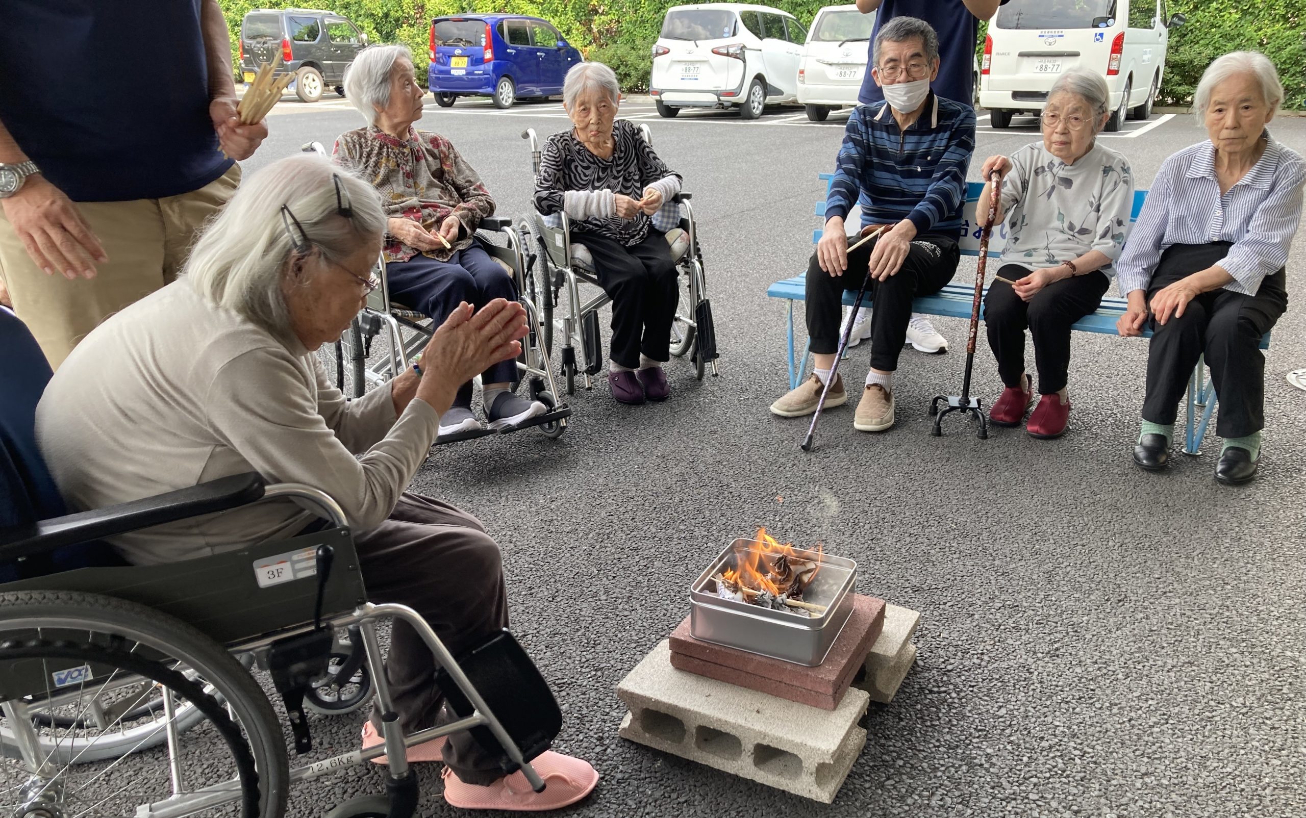 短時間ではありましたが、多くのご入居者にお集まり頂き、木をくべていきました。