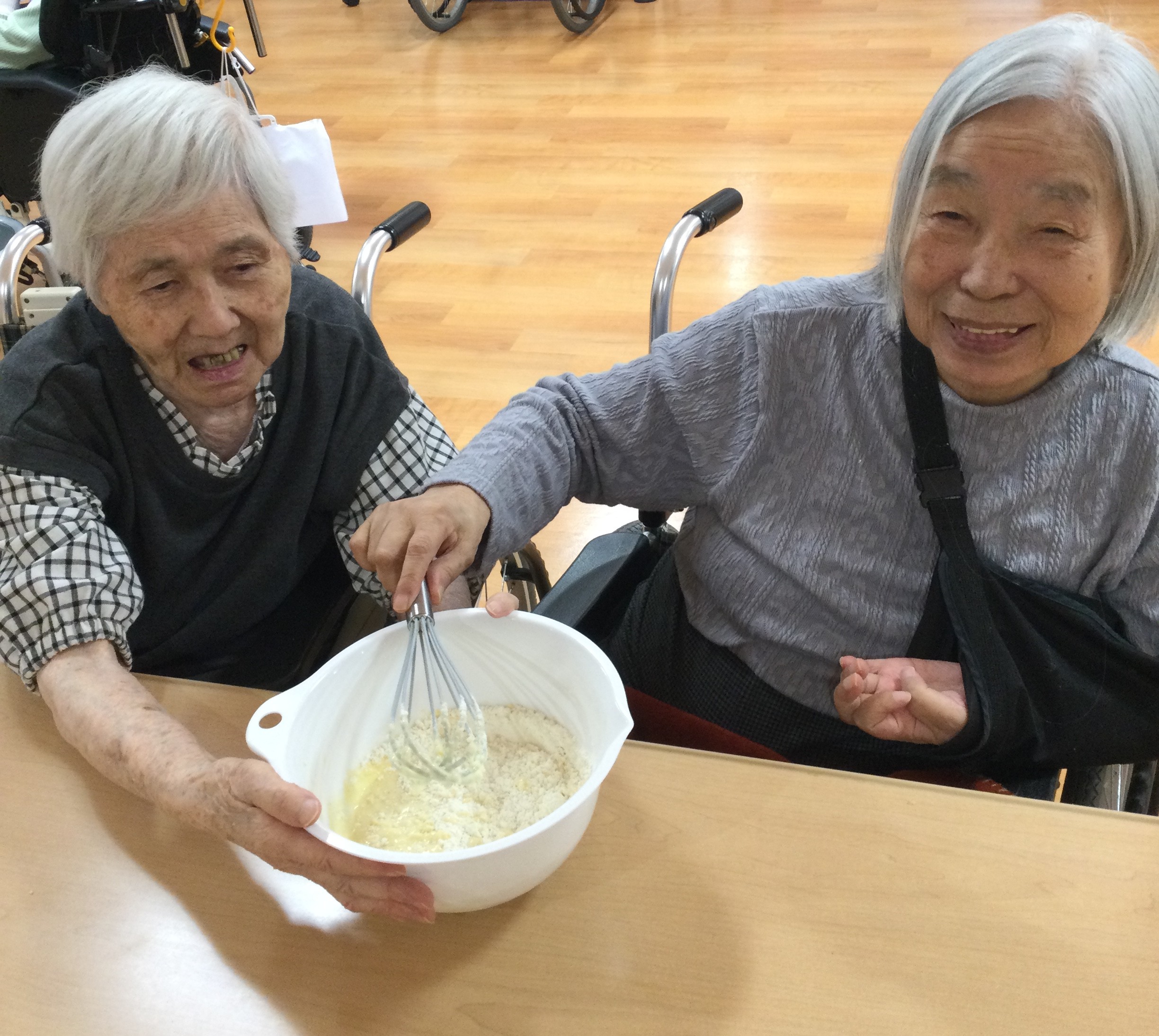 ケーキ作りの一部の作業をご入居者にお手伝い頂きました。