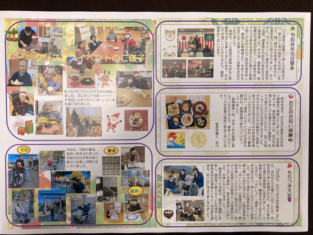本日、年4回発行の広報誌を発行いたしました。ご入居者の家族等関係者各位には順次発送させて頂きます。