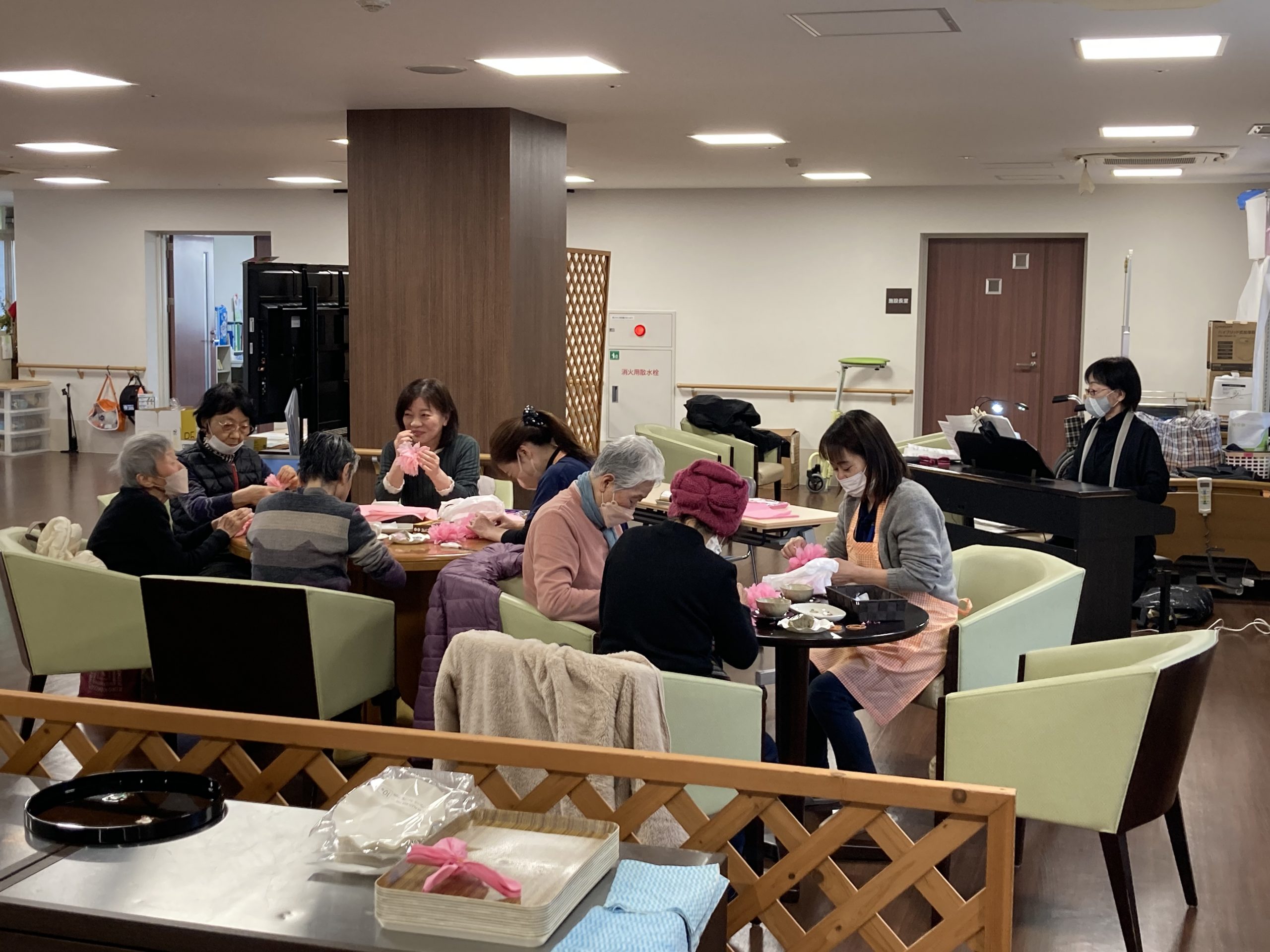 出来上がったお花飾りは、苑内の春の飾りものにさせていただきます😊🌸
