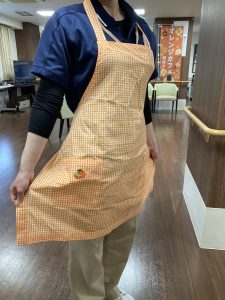 そして今回、ご寄付頂いた手作りのオレンジ色のエプロンを付けさせていただきました🍊✨