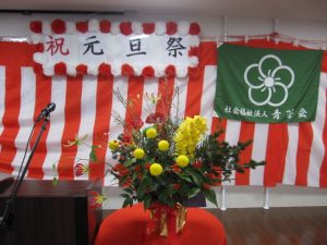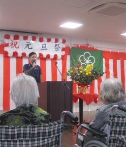 施設長のご挨拶・ご利用者のご挨拶・職員の新年の抱負をお話し、皆さん一緒に新年のお祝いをしました。